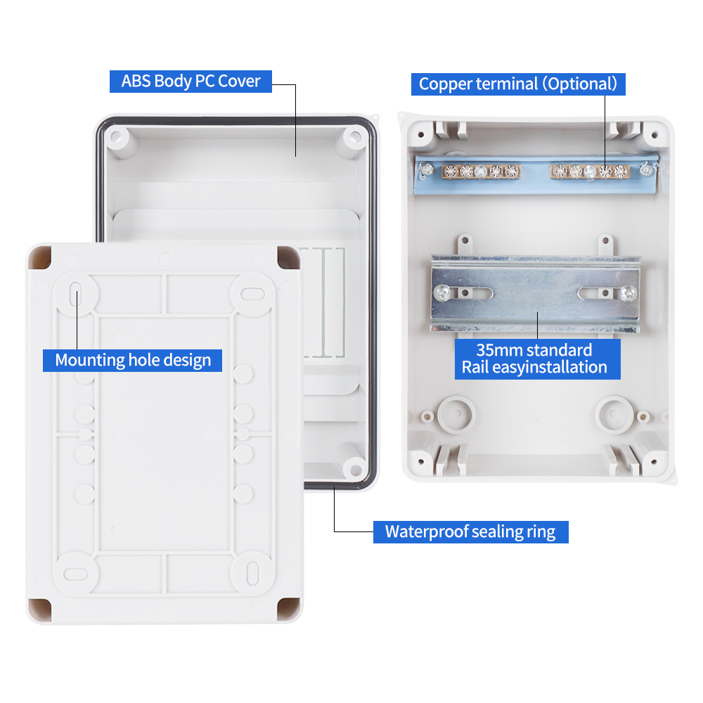 MQHT series all plastic material Waterproof Distribution Box is made of ABS material for the bottom shell and surface frame and PC material for the transparent cover, which has characteristics such as good toughness, high strength, good impact resistance, and long service life. Suitable for various indoor and outdoor places such as waterproof, dustproof, and anti-corrosion. Executive standard: GB/T 17466.1:GB/T 17466.24; IEC 60529 IP65.